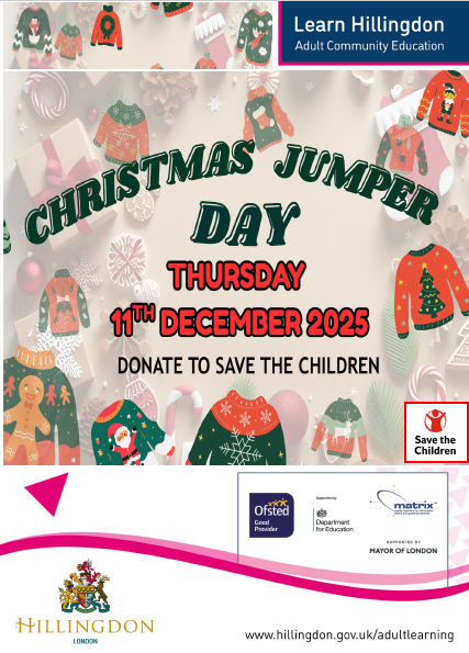 Christmas Jumper Day by Isha Arora - Friday, 28 November 2025, 1:12 PM Number of replies: 0 Bring some festive cheer and join us for Christmas Jumper Day on Thursday 11th December, all in support of the Save the Children charity! Learners and staff are warmly invited to wear their festive jumpers and contribute a small donation on the day. Permalink